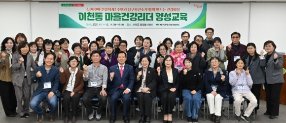 조재구 남구청장은 “건강리더 양성교육을 통해 주민이 직접 참여하는 건강마을 만들기 사업의 기반을 마련할 예정이다.”라며, “앞으로 주민 주도의 지속가능한 건강증진 활동이 이천동에 뿌리내릴 수 있도록 적극 지원하겠다.”라고 말했다.
