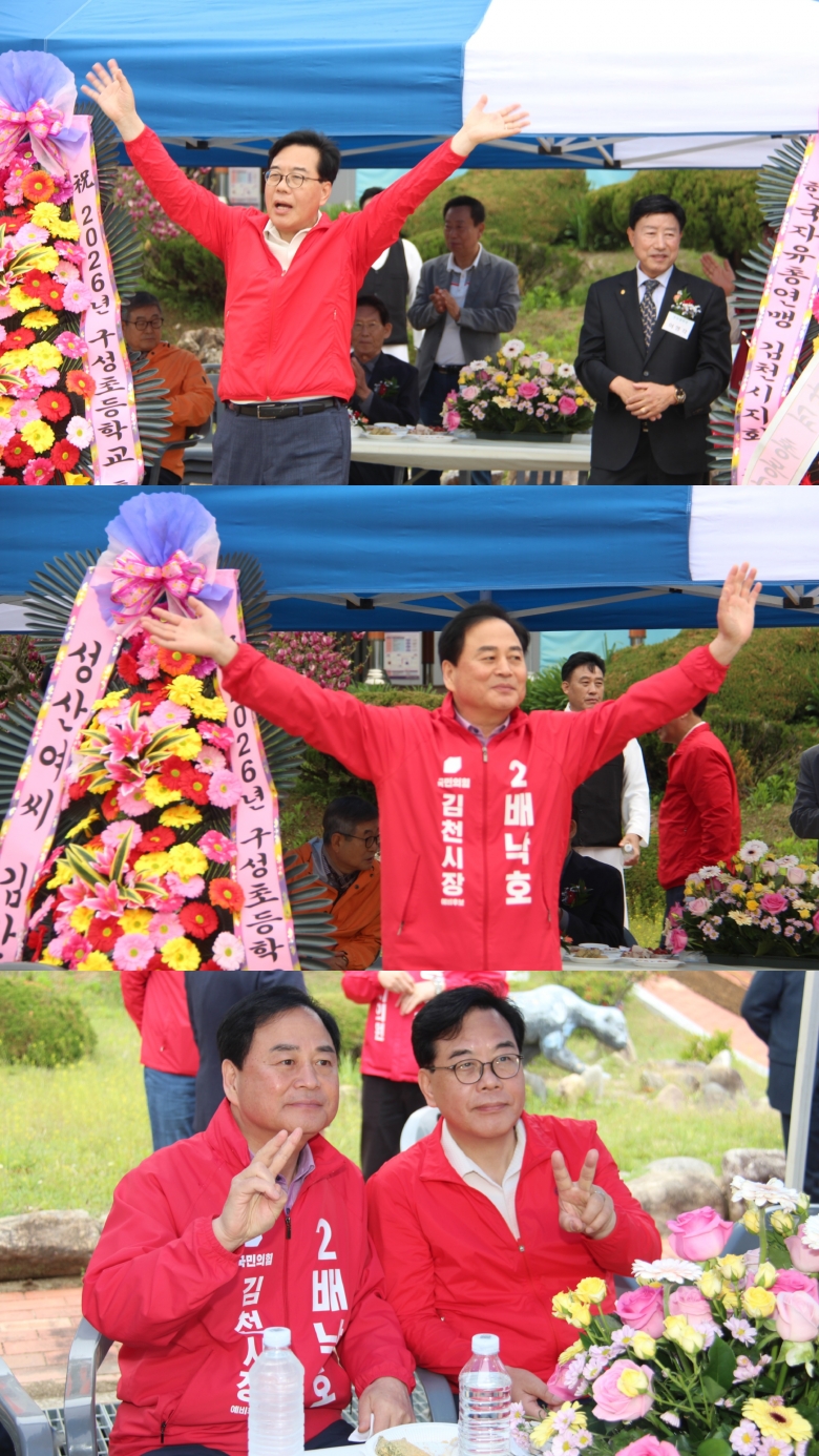 이날 행사에는 송언석 국회의원, 배낙호 시장후보자, 최한동 체육회장, 여정휘 조달청장을 비롯해 지방선거 도의원·시의원 후보자들까지 대거 참석했다.